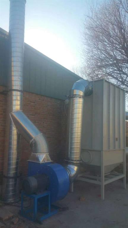 低壓脈沖袋式除塵器的氣體凈化方式為外濾式,含塵氣體由導(dǎo)流管進(jìn)入各單元過濾室,由于設(shè)計(jì)中濾袋底離進(jìn)風(fēng)口上口垂直距離有足夠、合理的氣流通過適當(dāng)導(dǎo)流和自然流向分布,達(dá)到整個(gè)過濾室內(nèi)空氣分布均勻,含塵氣體中的顆粒粉塵通過自然沉降分離后直接落入灰斗,其余粉塵在導(dǎo)流系統(tǒng)的引導(dǎo)下,隨氣流進(jìn)入中箱體過濾區(qū),吸附在濾袋外表面。過濾后的潔凈氣體透過濾袋經(jīng)上箱體、排風(fēng)管排出。